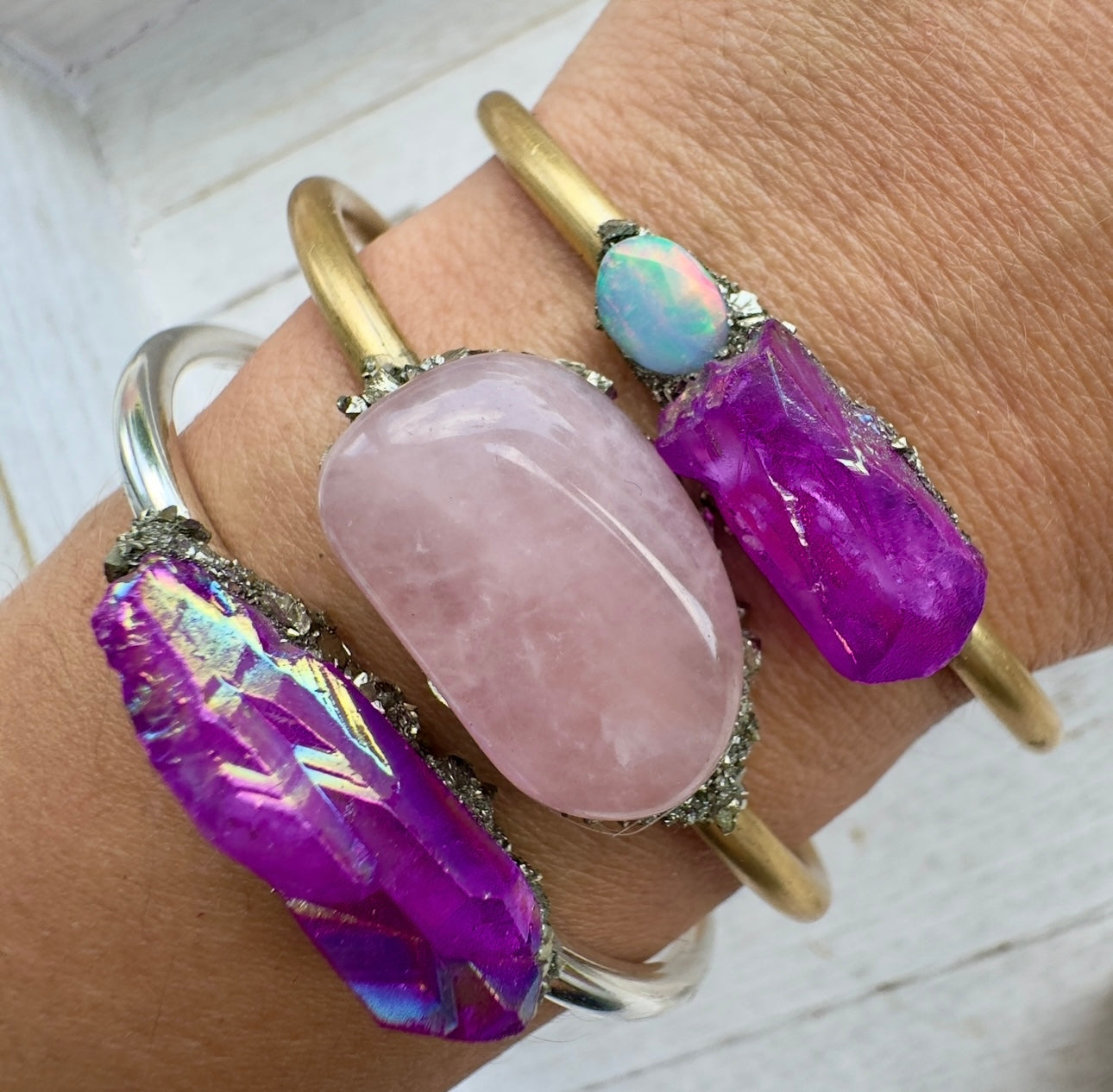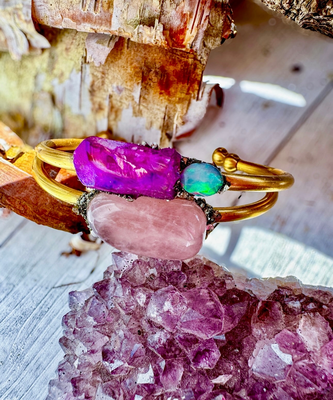 Gorgeous Raw Opal and pink flamingo Aura Quartz